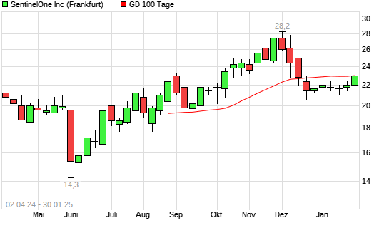 Mit dem Rücksetzer auf 22,80 EUR hat die Sprint-Aktie am 29.01.2025 die 100-Tage-Linie nach unten gekreuzt.