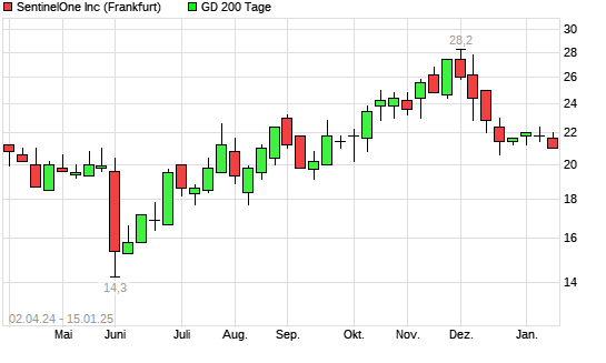 Mit dem Rücksetzer auf 21,00 EUR hat die Sprint-Aktie am 14.01.2025 die 200-Tage-Linie nach unten gekreuzt.