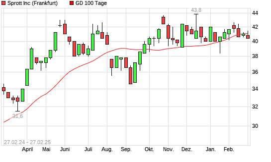 Mit dem Anstieg auf 41,40 EUR hat die Sprott-Aktie am 26.02.2025 die 100-Tage-Linie nach oben gekreuzt.