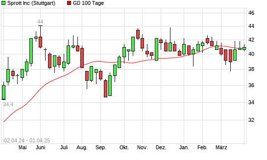 Mit dem Anstieg auf 41,20 EUR hat die Sprott-Aktie am 31.03.2025 die 100-Tage-Linie nach oben gekreuzt.
