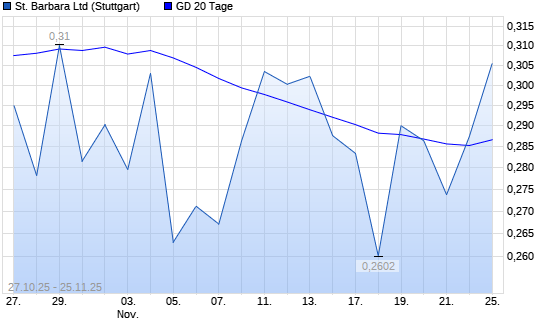 Mit dem Anstieg auf 0,29 EUR hat die St. Barbara-Aktie am 24.11.2025 die 20-Tage-Linie nach oben gekreuzt.