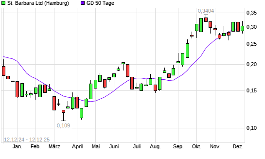 Mit dem Rücksetzer auf 0,29 EUR hat die St. Barbara-Aktie am 11.12.2025 die 50-Tage-Linie nach unten gekreuzt.