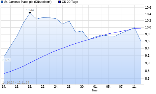 Mit dem Anstieg auf 9,99 EUR hat die St. James's Place-Aktie am 11.11.2024 die 20-Tage-Linie nach oben gekreuzt.