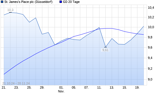 Mit dem Anstieg auf 9,88 EUR hat die St. James's Place-Aktie am 19.11.2024 die 20-Tage-Linie nach oben gekreuzt.
