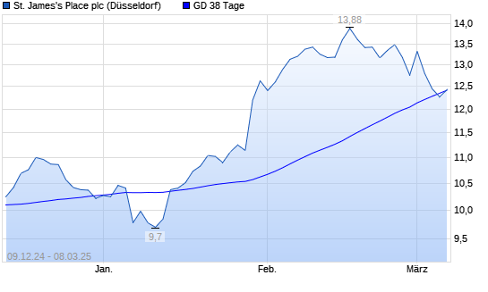 Mit dem Anstieg auf 12,43 EUR hat die St. James's Place-Aktie am 07.03.2025 die 38-Tage-Linie nach oben gekreuzt.