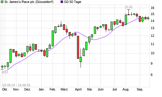 Mit dem Rücksetzer auf 14,40 EUR hat die St. James's Place-Aktie am 23.09.2025 die 50-Tage-Linie nach unten gekreuzt.