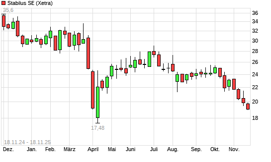 Mit dem Rücksetzer auf 19,58 EUR hat die Stabilus-Aktie (ISIN DE000STAB1L8) am 17.11.2025 ein neues 6-Monats-Tief erreicht und damit den Kurs vom 14.11.2025 eingestellt.
