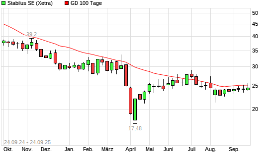 Mit dem Anstieg auf 25,30 EUR hat die Stabilus-Aktie am 23.09.2025 die 100-Tage-Linie nach oben gekreuzt.