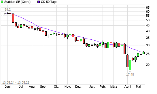Mit dem Anstieg auf 25,85 EUR hat die Stabilus-Aktie am 12.05.2025 die 50-Tage-Linie nach oben gekreuzt.