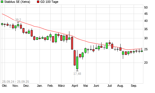 Mit dem Rücksetzer auf 24,40 EUR hat die Stabilus-Aktie am 24.09.2025 die 100-Tage-Linie nach unten gekreuzt.