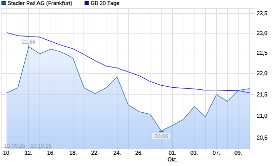 Mit dem Anstieg auf 21,60 EUR hat die Stadler Rail-Aktie am 09.10.2025 die 20-Tage-Linie nach oben gekreuzt.