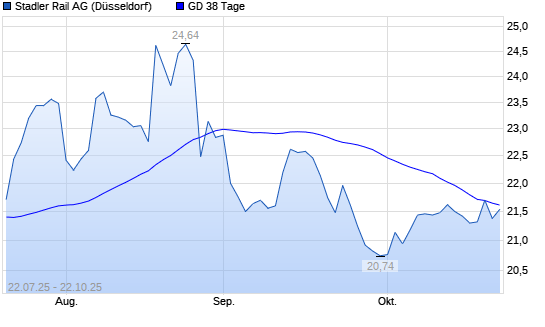 Mit dem Anstieg auf 21,72 EUR hat die Stadler Rail-Aktie am 21.10.2025 die 38-Tage-Linie nach oben gekreuzt.