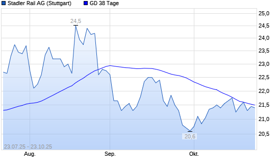 Mit dem Rücksetzer auf 21,56 EUR hat die Stadler Rail-Aktie am 22.10.2025 die 38-Tage-Linie nach unten gekreuzt.