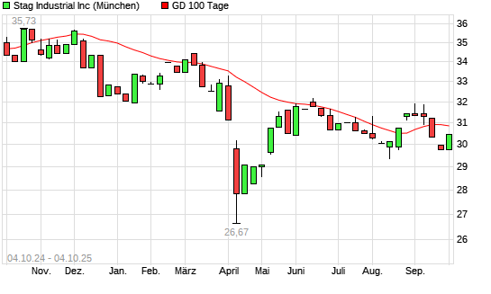 Mit dem Anstieg auf 30,82 EUR hat die Stag Industrial-Aktie am 03.10.2025 die 100-Tage-Linie nach oben gekreuzt.