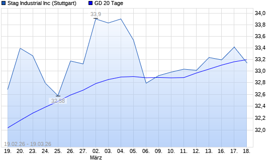 Mit dem Rücksetzer auf 33,14 EUR hat die Stag Industrial-Aktie am 18.03.2026 die 20-Tage-Linie nach unten gekreuzt.