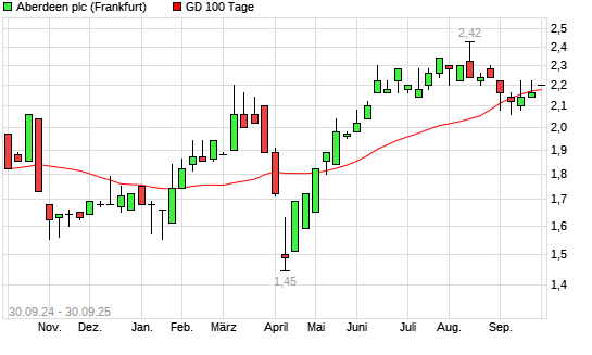 Mit dem Anstieg auf 2,20 EUR hat die Standard Life Aberdeen-Aktie am 29.09.2025 die 100-Tage-Linie nach oben gekreuzt.