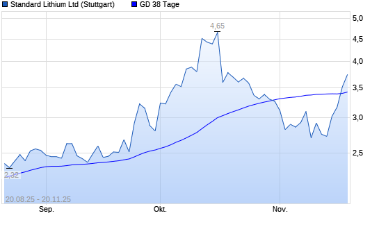 Mit dem Anstieg auf 3,59 EUR hat die Standard Lithium-Aktie am 19.11.2025 die 38-Tage-Linie nach oben gekreuzt.