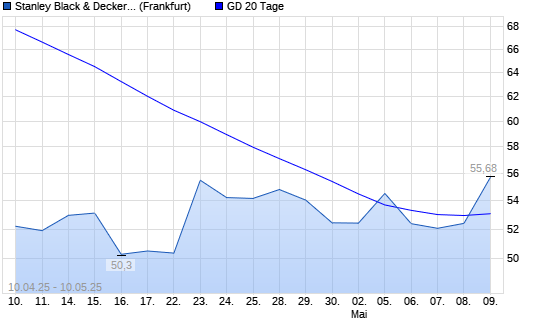 Mit dem Anstieg auf 55,68 EUR hat die Stanley Black & Decker-Aktie am 09.05.2025 die 20-Tage-Linie nach oben gekreuzt.