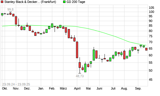 Mit dem Rücksetzer auf 64,92 EUR hat die Stanley Black & Decker-Aktie am 22.09.2025 die 200-Tage-Linie nach unten gekreuzt.