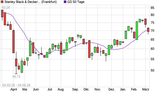 Mit dem Rücksetzer auf 69,86 EUR hat die Stanley Black & Decker-Aktie am 03.03.2026 die 50-Tage-Linie nach unten gekreuzt.