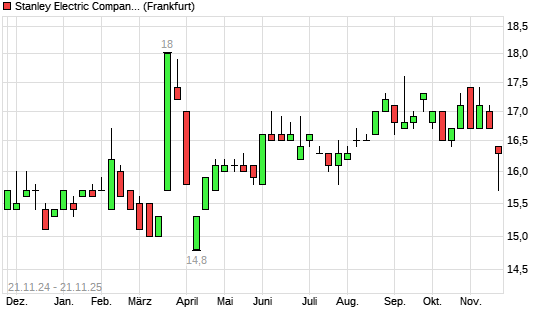 Mit dem Rücksetzer auf 15,70 EUR hat die Stanley Electric Company-Aktie (ISIN JP3399400005) am 20.11.2025 ein neues 6-Monats-Tief erreicht und damit den Kurs vom 22.05.2025 eingestellt.