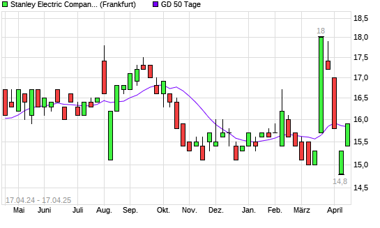 Mit dem Rücksetzer auf 15,80 EUR hat die Stanley Electric Company-Aktie am 16.04.2025 die 50-Tage-Linie nach unten gekreuzt.