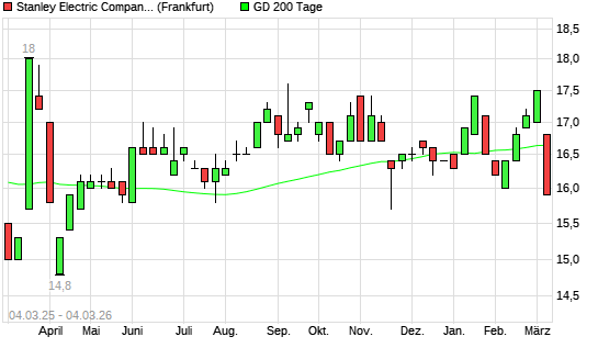 Mit dem Rücksetzer auf 16,30 EUR hat die Stanley Electric Company-Aktie am 03.03.2026 die 200-Tage-Linie nach unten gekreuzt.Die Stanley Electric Company-Aktie befand sich seit ...weiterlesen