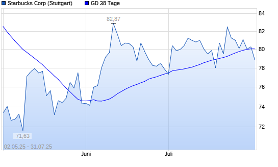 Mit dem Rücksetzer auf 79,66 EUR hat die Starbucks-Aktie am 30.07.2025 die 38-Tage-Linie nach unten gekreuzt.