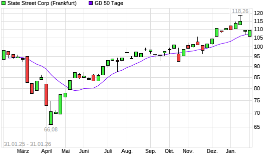 Mit dem Anstieg auf 109,36 EUR hat die State Street-Aktie am 30.01.2026 die 50-Tage-Linie nach oben gekreuzt.