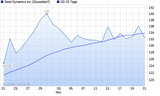 Mit dem Anstieg auf 136,26 EUR hat die Steel Dynamics-Aktie am 20.11.2025 die 20-Tage-Linie nach oben gekreuzt.