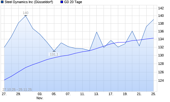 Mit dem Anstieg auf 137,12 EUR hat die Steel Dynamics-Aktie am 24.11.2025 die 20-Tage-Linie nach oben gekreuzt.
