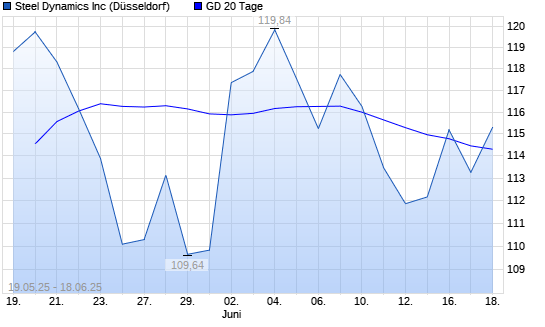 Mit dem Rücksetzer auf 112,98 EUR hat die Steel Dynamics-Aktie am 17.06.2025 die 20-Tage-Linie nach unten gekreuzt.