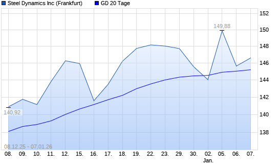 Mit dem Rücksetzer auf 145,66 EUR hat die Steel Dynamics-Aktie am 06.01.2026 die 20-Tage-Linie nach unten gekreuzt.