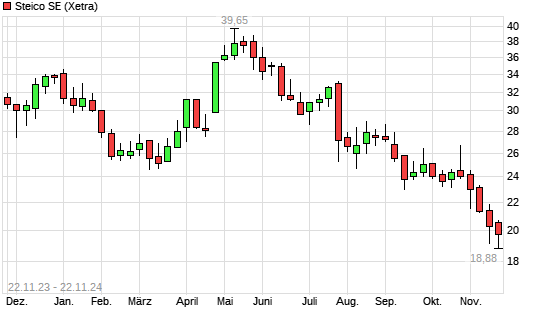 Mit dem Rücksetzer auf 19,14 EUR hat die Steico-Aktie (ISIN DE000A0LR936) am 21.11.2024 ein neues 3-Jahres-Tief erreicht und damit den Kurs vom 20.11.2024 eingestellt.