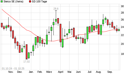 Mit dem Anstieg auf 23,50 EUR hat die Steico-Aktie am 30.09.2025 die 100-Tage-Linie nach oben gekreuzt.