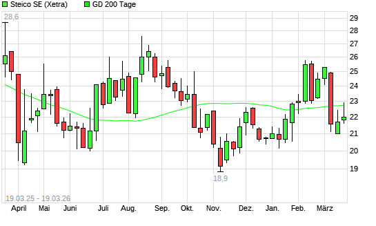 Mit dem Anstieg auf 22,80 EUR hat die Steico-Aktie am 18.03.2026 die 200-Tage-Linie nach oben gekreuzt.