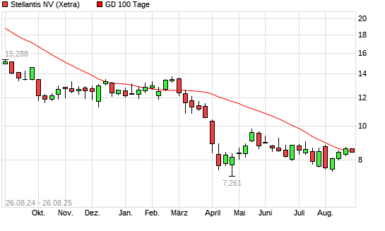 Mit dem Anstieg auf 8,53 EUR hat die Stellantis-Aktie am 25.08.2025 die 100-Tage-Linie nach oben gekreuzt.