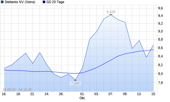 Mit dem Anstieg auf 8,69 EUR hat die Stellantis-Aktie am 15.10.2025 die 20-Tage-Linie nach oben gekreuzt.
