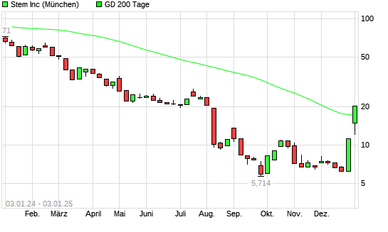 Die Stem-Aktie befand sich seit dem 30.12.2024 im langfristigen Aufwärtstrend und hat in diesem Zeitraum -9,33% an Wert verloren.