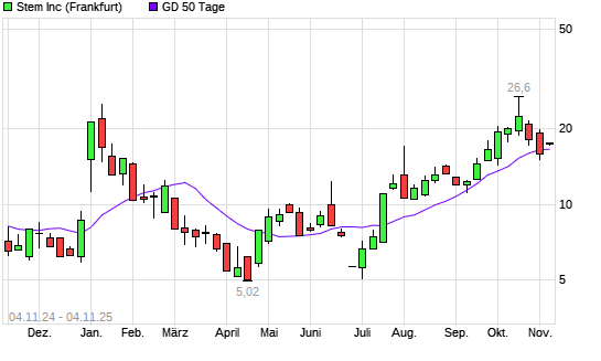 Mit dem Anstieg auf 17,60 EUR hat die Stem-Aktie am 03.11.2025 die 50-Tage-Linie nach oben gekreuzt.Die Stem-Aktie befindet sich seit dem 18.07.2025 im langfristigen Aufwärtstrend und hat in ...weiterlesen