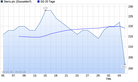 Mit dem Anstieg auf 222,00 EUR hat die Steris-Aktie am 04.02.2026 die 20-Tage-Linie nach oben gekreuzt.