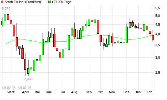 Mit dem Rücksetzer auf 3,98 EUR hat die Stitch Fix,-Aktie am 04.02.2026 die 200-Tage-Linie nach unten gekreuzt.