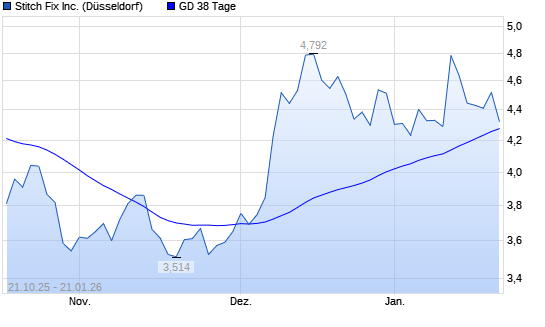 Mit dem Rücksetzer auf 4,30 EUR hat die Stitch Fix,-Aktie am 20.01.2026 die 38-Tage-Linie nach unten gekreuzt.Die Stitch Fix,-Aktie befindet sich seit dem 02.12.2025 im ...weiterlesen