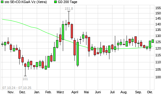 Mit dem Anstieg auf 125,20 EUR hat die Sto Vz-Aktie am 06.10.2025 die 200-Tage-Linie nach oben gekreuzt.