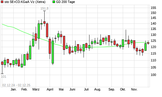 Mit dem Anstieg auf 123,40 EUR hat die Sto Vz-Aktie am 01.12.2025 die 200-Tage-Linie nach oben gekreuzt.