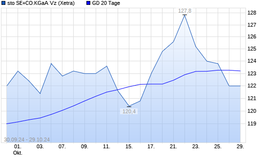 Mit dem Rücksetzer auf 122,60 EUR hat die Sto Vz-Aktie am 28.10.2024 die 20-Tage-Linie nach unten gekreuzt.