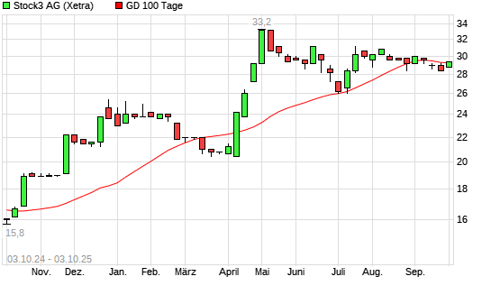 Mit dem Anstieg auf 28,60 EUR hat die Stock3 AG (ex BörseGo)-Aktie am 02.10.2025 die 100-Tage-Linie nach oben gekreuzt.