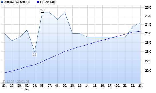 Mit dem Anstieg auf 24,00 EUR hat die Stock3 AG (ex BörseGo)-Aktie am 22.01.2025 die 20-Tage-Linie nach oben gekreuzt.