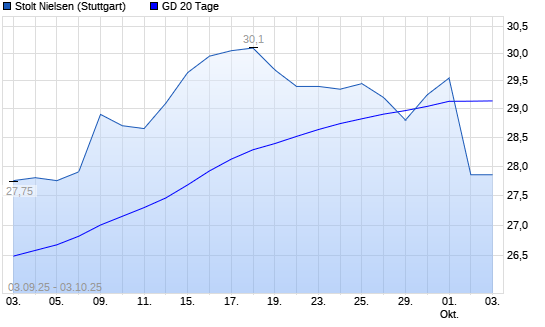 Mit dem Anstieg auf 29,70 EUR hat die Stolt-Nielsen-Aktie am 02.10.2025 die 20-Tage-Linie nach oben gekreuzt.