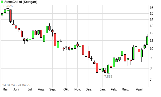Mit dem Anstieg auf 11,51 EUR hat die Stoneco-Aktie (ISIN KYG851581069) am 23.04.2025 ein neues 6-Monats-Hoch erreicht und damit den Kurs vom 22.04.2025 eingestellt.